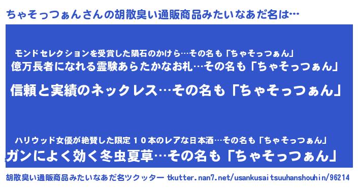 | 意味不明あだ名 | 『とにかく怪しいちゃそっつぁん』 |