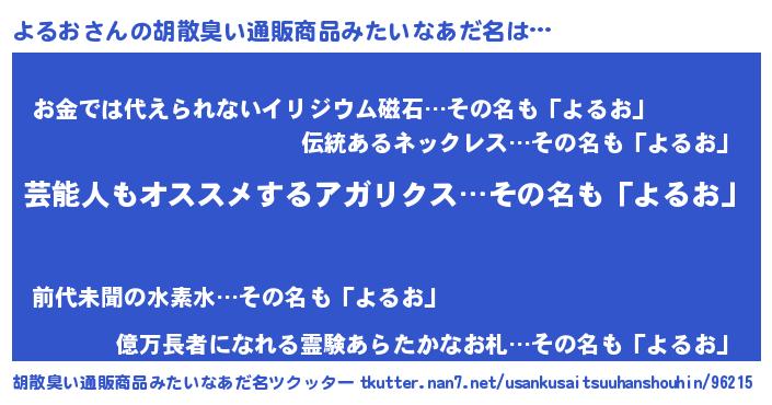 | ヒーロー風カッコイイあだ名 | 『究極戦士ヨルオ』『慈愛の使者よるお』 |