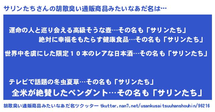 | 女子向けラノベタイトル風あだ名 | 『乙女ゲームの破滅フラグしかない悪役サリンたちに転生してしまった…』 |