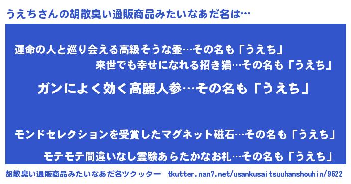 | 意味不明あだ名 | 『めかぶ科うえち属』『自称うえち』 |