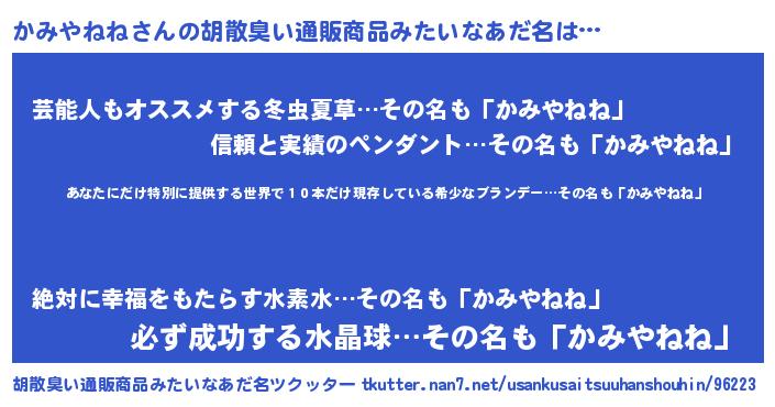 | 伝説のあだ名 | 『封印されしスナイパーかみやねね』 |