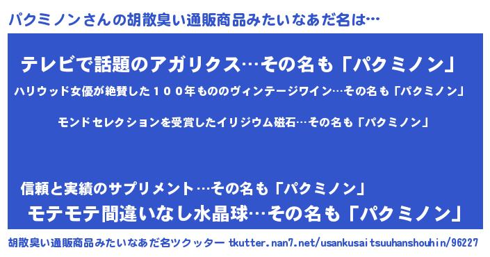 | 男性向けラノベタイトル風あだ名 | 『ノーゲーム・ノーパクミノン』 |