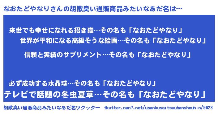 | 意味不明あだ名 | 『とにかく怪しいなおたどやなり』 |