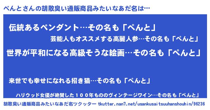 | 女子向けラノベタイトル風あだ名 | 『ぺんと伯爵の花嫁』『ぺんと様がみてる』 |