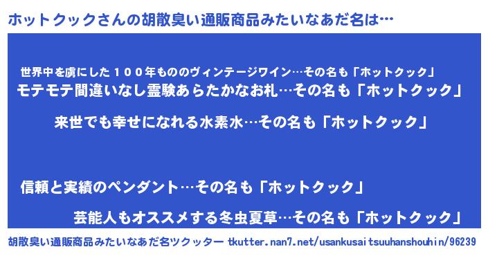 | ヘコむあだ名 | 『ホットクック(遠い目)』『ホッにゅー』 |