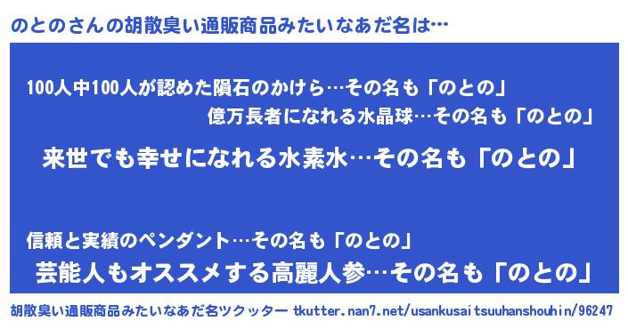| ヒーロー風カッコイイあだ名 | 『ネオノトノ』『正義の使者のとの』 |