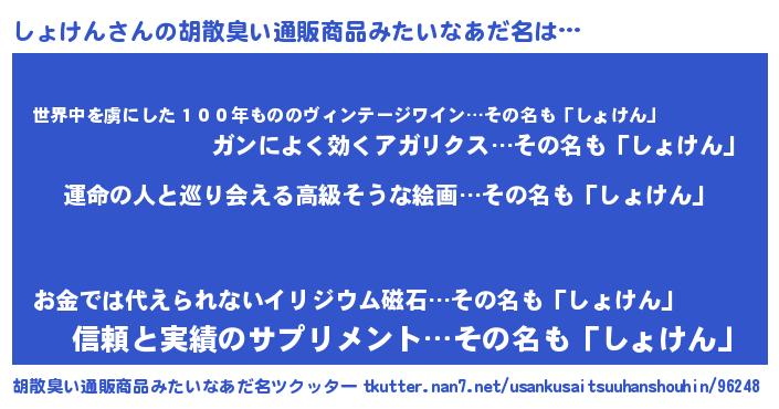 | 意味不明あだ名 | 『しょけんフォーエバー』『自称しょけん』 |