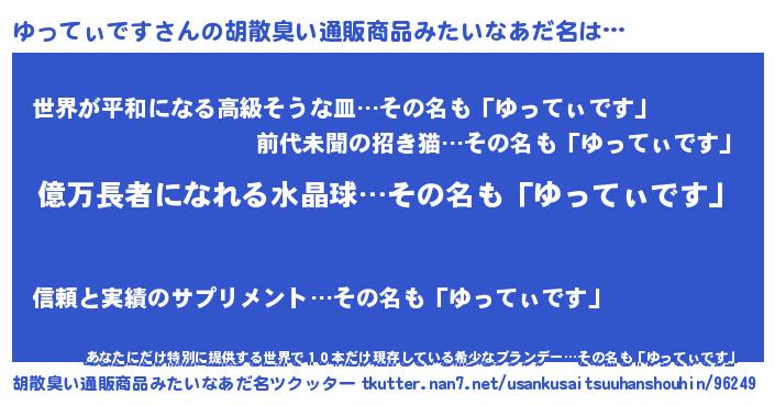 | ヘコむあだ名 | 『ゆっもー』『なまこ酢』『ゆっを』 |