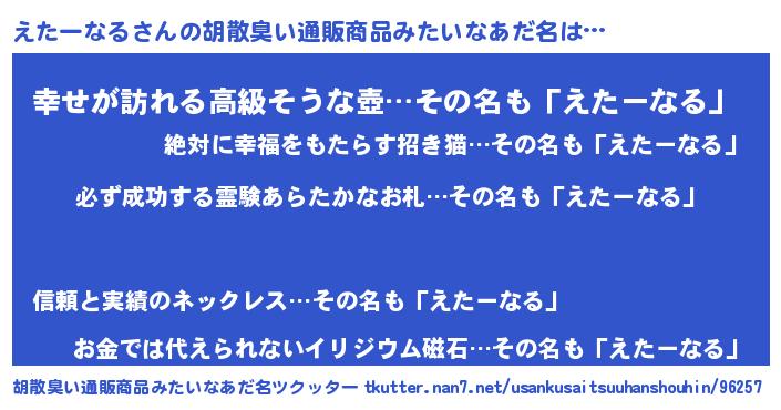 男性向けラノベタイトル風あだ名 | 『えたーなるの憂鬱』 |