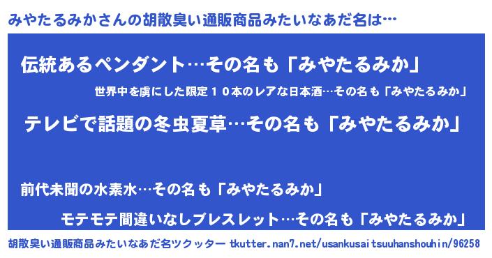 | 意味不明あだ名 | 『自称みやたるみか』 |