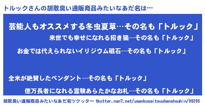 | ヒーロー風カッコイイあだ名 | 『慈愛の使者トルック』『ネオトルック』 |