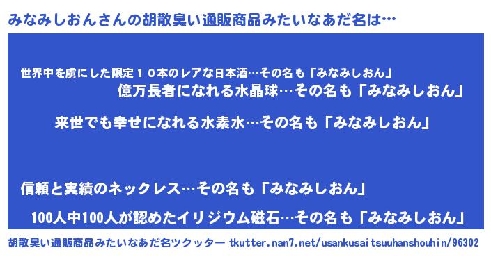 | ヘコむあだ名 | 『みなみしおん(遠い目)』『みなふぇ~』 |