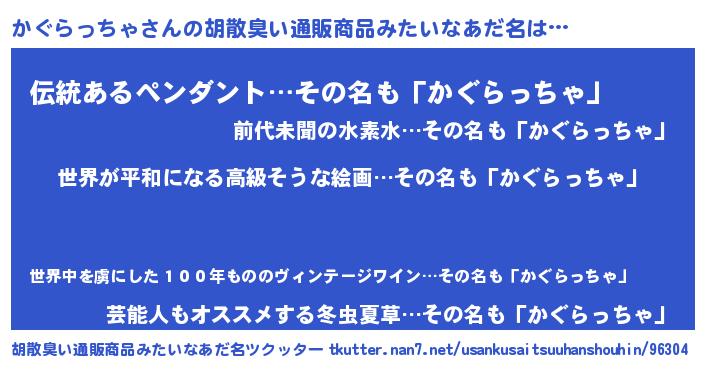 | 欧米人風あだ名 | 『かぐらっちゃクリステル』 |