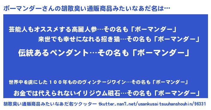 | 意味不明あだ名 | 『とにかく怪しいボーマンダー』 |