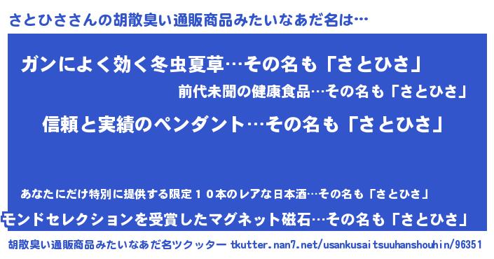 | 意味不明あだ名 | 『とにかく怪しいさとひさ』 |