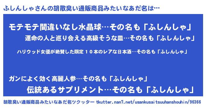 | 意味不明あだ名 | 『住所不定無職ふしんしゃ(41歳)』 |