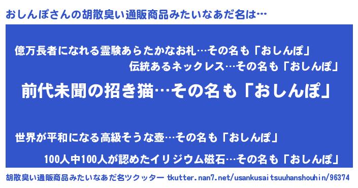 | 意味不明あだ名 | 『永久保存おしんぽ』『ペロリンおしんぽ』 |