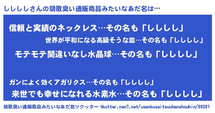 | 男性向けラノベタイトル風あだ名 | 『ししししの憂鬱』 |