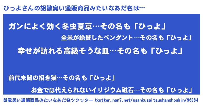 | 男性向けラノベタイトル風あだ名 | 『緋弾のヒッヨ』 |
