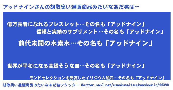 | ヘコむあだ名 | 『アッドナイン(震え声)』『アッふぇ~』 |