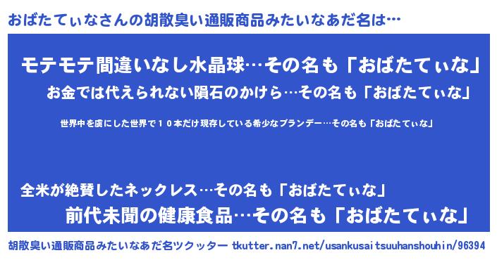 | ヘコむあだ名 | 『おばっふぃ~』『おばたてぃな(笑)』 |
