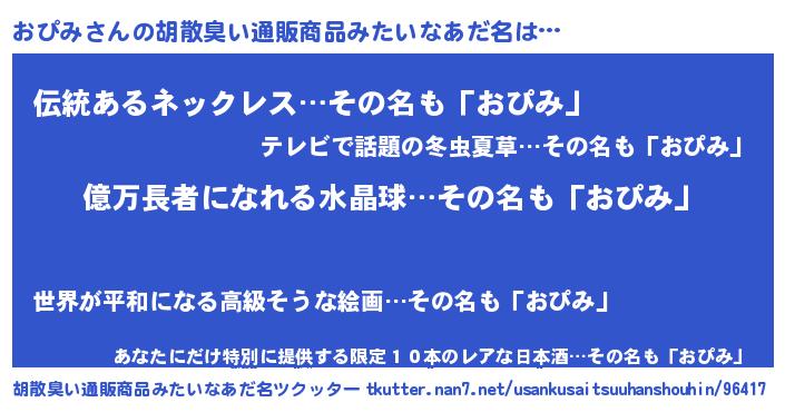 | ヘコむあだ名 | 『おぴにゅー』『おぴっ子』『豆乳』 |