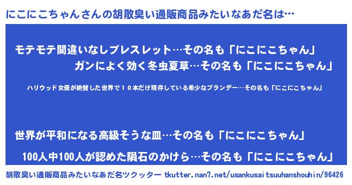 | ヘコむあだ名 | 『にこもー』『酢こんぶ』『にこを』 |