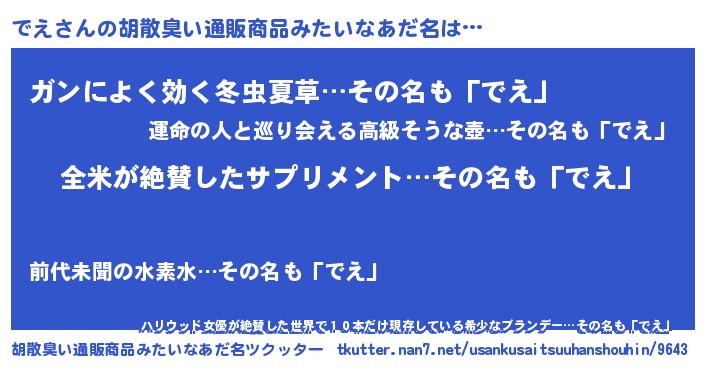 | ヒーロー風カッコイイあだ名 | 『炎刃騎士デエ』『究極戦士デエ』 |