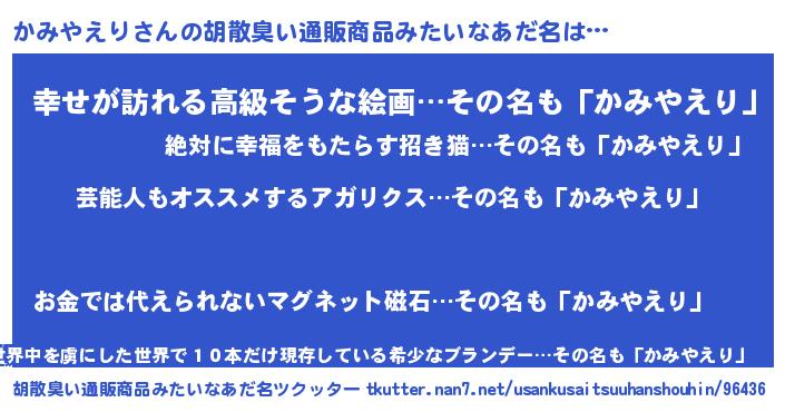 | 肩書あだ名 | 『かみやえり閣下』『かみやえり総理大臣』 |