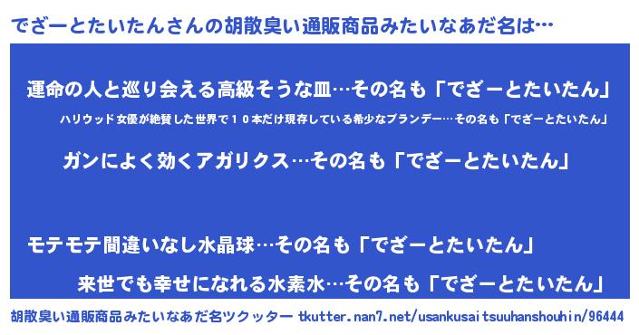 | 意味不明あだ名 | 『自称でざーとたいたん』 |