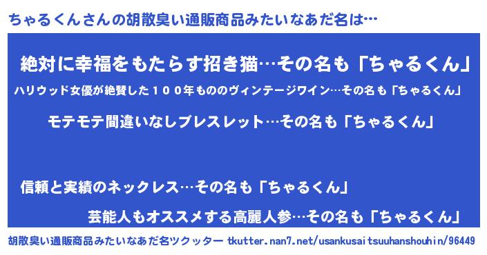 | ヘコむあだ名 | 『ちゃふぇ~』『ちゃるくん(小並感)』 |