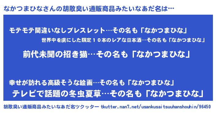 | ヘコむあだ名 | 『なかつまひな(笑)』『なかにー』 |