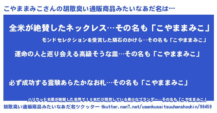 こやままみこさんの胡散臭い通販商品みたいなあだ名をツクッター!
