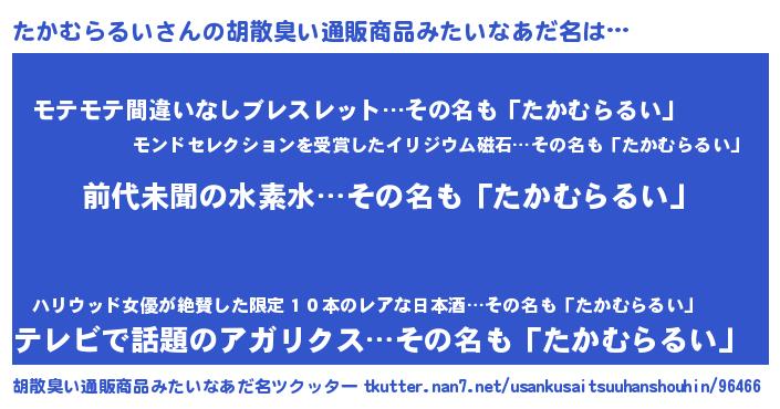 | 意味不明あだ名 | 『永久保存たかむらるい』 |