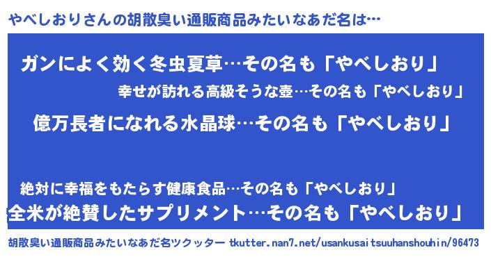 | 意味不明あだ名 | 『ペロリンやべしおり』『自称やべしおり』 |