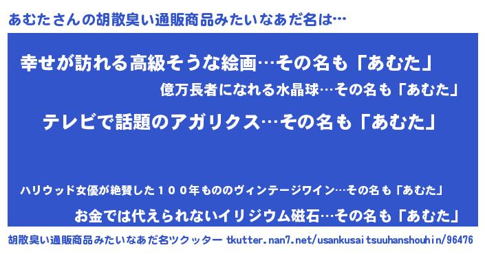 | 意味不明あだ名 | 『自称あむた』『しいたけ科あむた属』 |