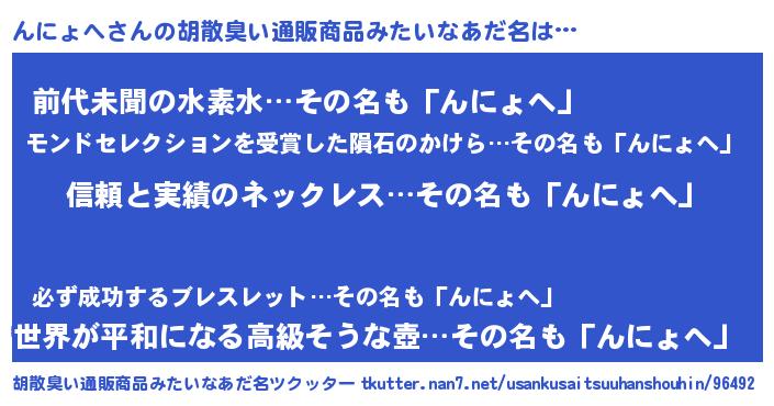 | 意味不明あだ名 | 『とにかく怪しいんにょへ』 |