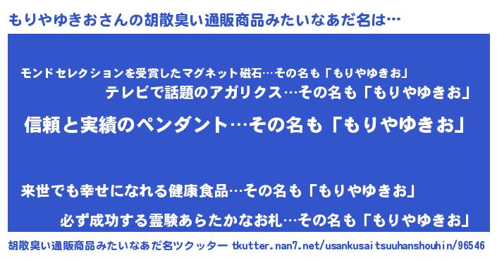 | 意味不明あだ名 | 『とにかく怪しいもりやゆきお』 |