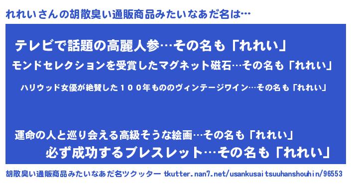 | ヘコむあだ名 | 『れれにー』『豆乳』『れれを』 |