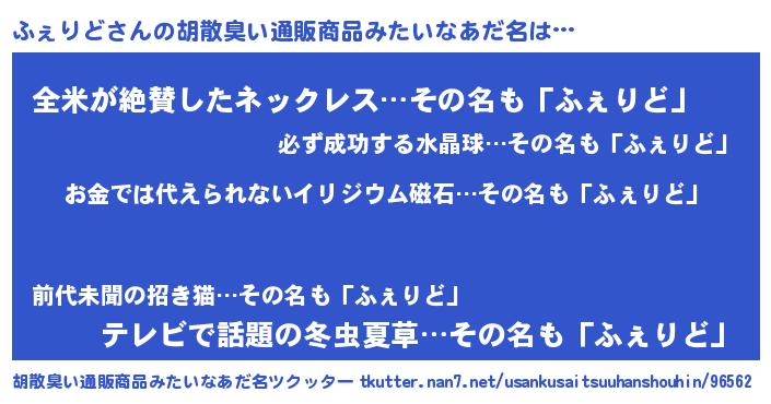 | 女子向けラノベタイトル風あだ名 | 『ふぇりど恋絵巻』 |