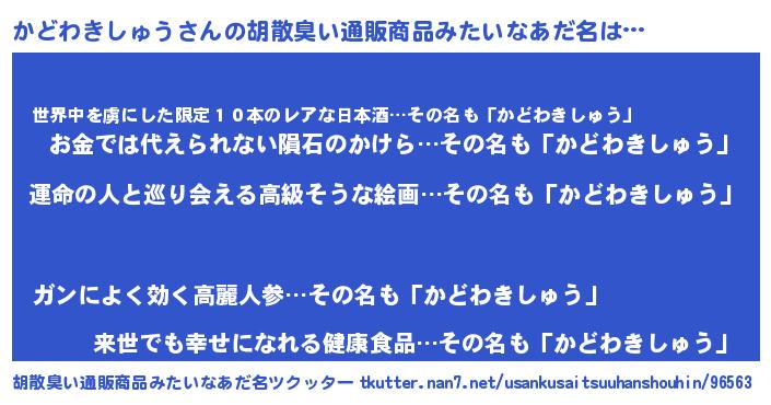 | ファンタジー風あだ名 | 『エターナルカドワキシュウー』 |