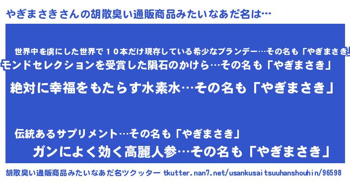 | 意味不明あだ名 | 『永久保存やぎまさき』『自称やぎまさき』 |