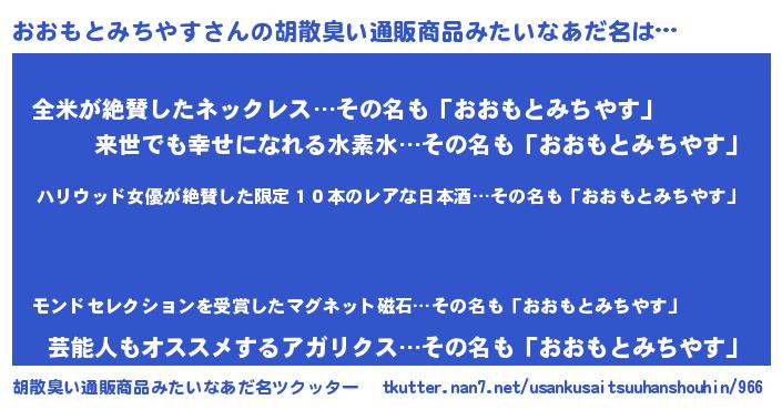 | 伝説のあだ名 | 『孤高の僧侶おおもとみちやす』 |