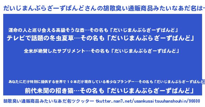 | 伝説のあだ名 | 『覚醒した魔法使いだいじまんぶらざーずばんど』 |