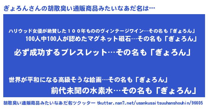 | 男性向けラノベタイトル風あだ名 | 『ぎょろんの憂鬱』『ギョロンスレイヤー』 |