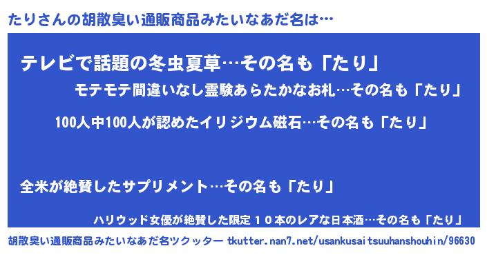 | 女子向けラノベタイトル風あだ名 | 『たり夫妻のなれそめ』『闇のたり』 |