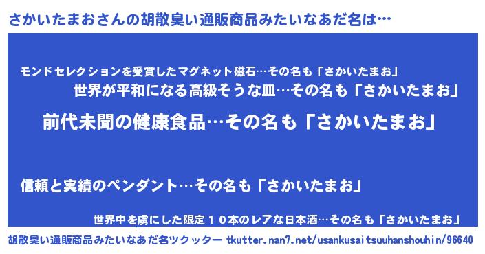 | 意味不明あだ名 | 『永久保存さかいたまお』 |