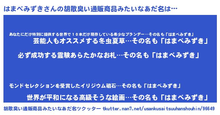 | 恥ずかしいあだ名 | 『プリティーはまべみずき』『はまっちょ』 |