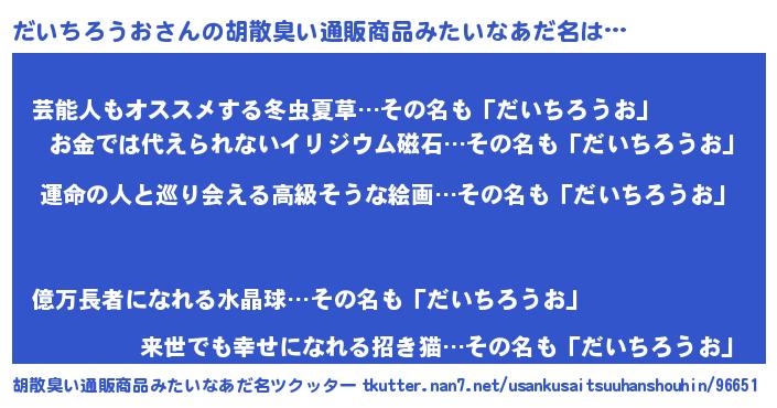| 意味不明あだ名 | 『だいちろうおフォーエバー』 |