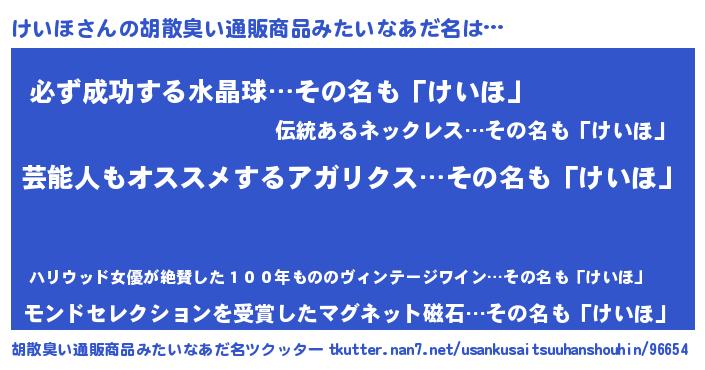 | 意味不明あだ名 | 『自称けいほ』『ペロリンけいほ』 |